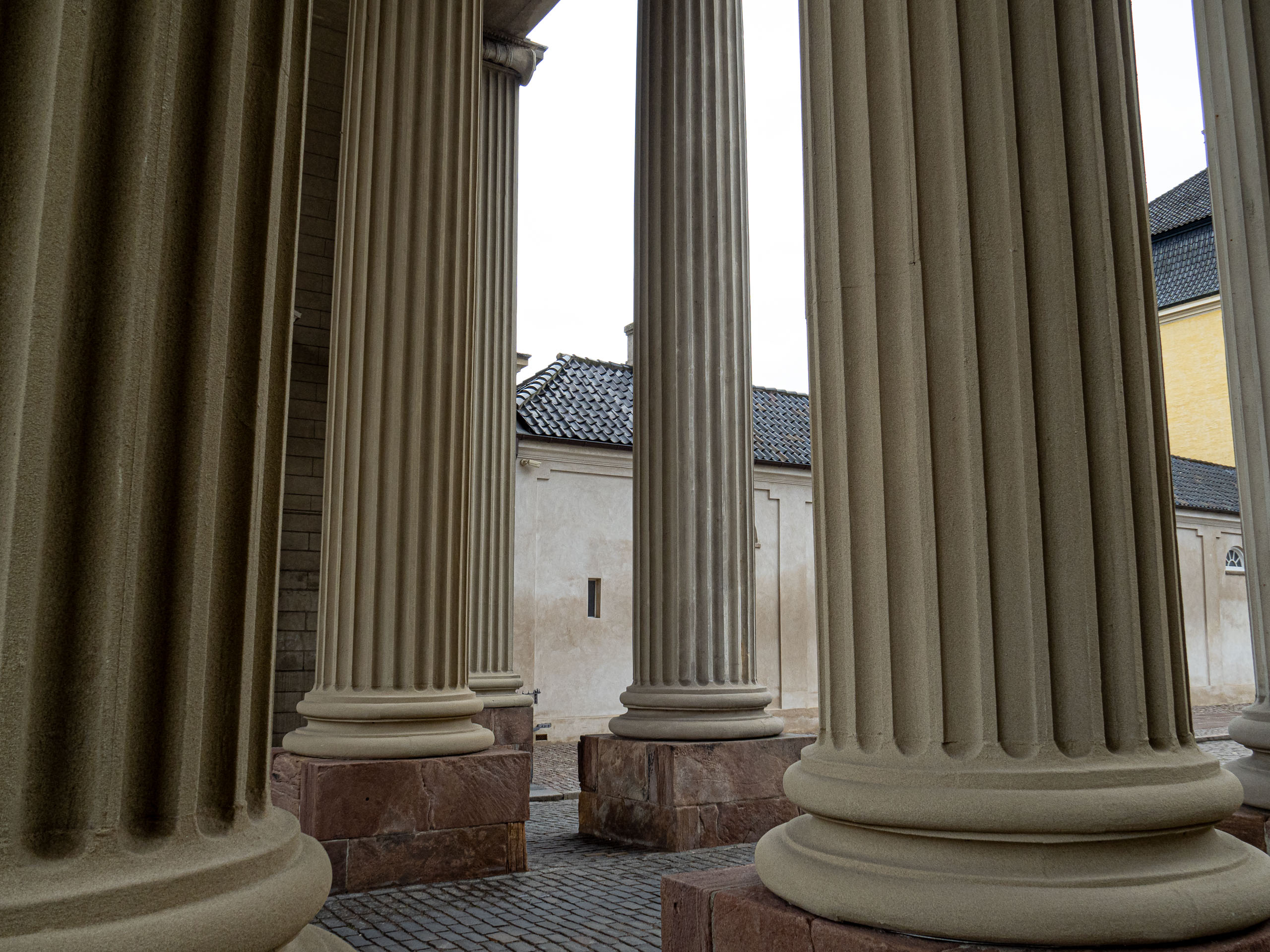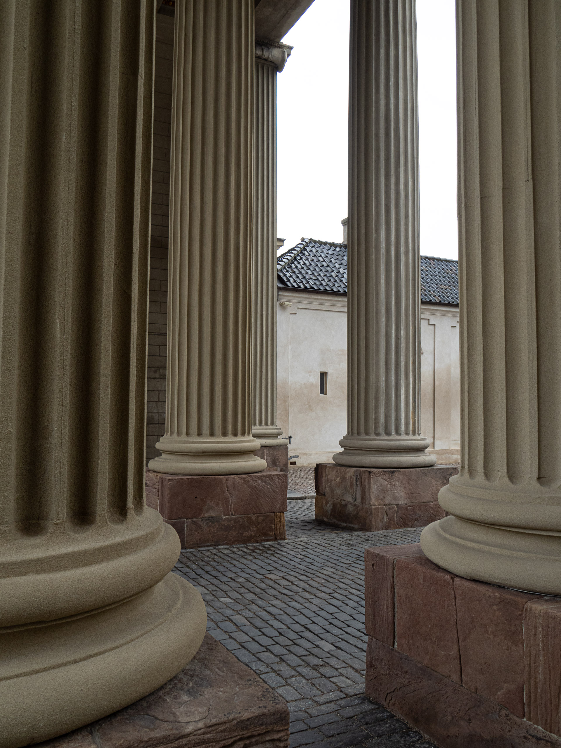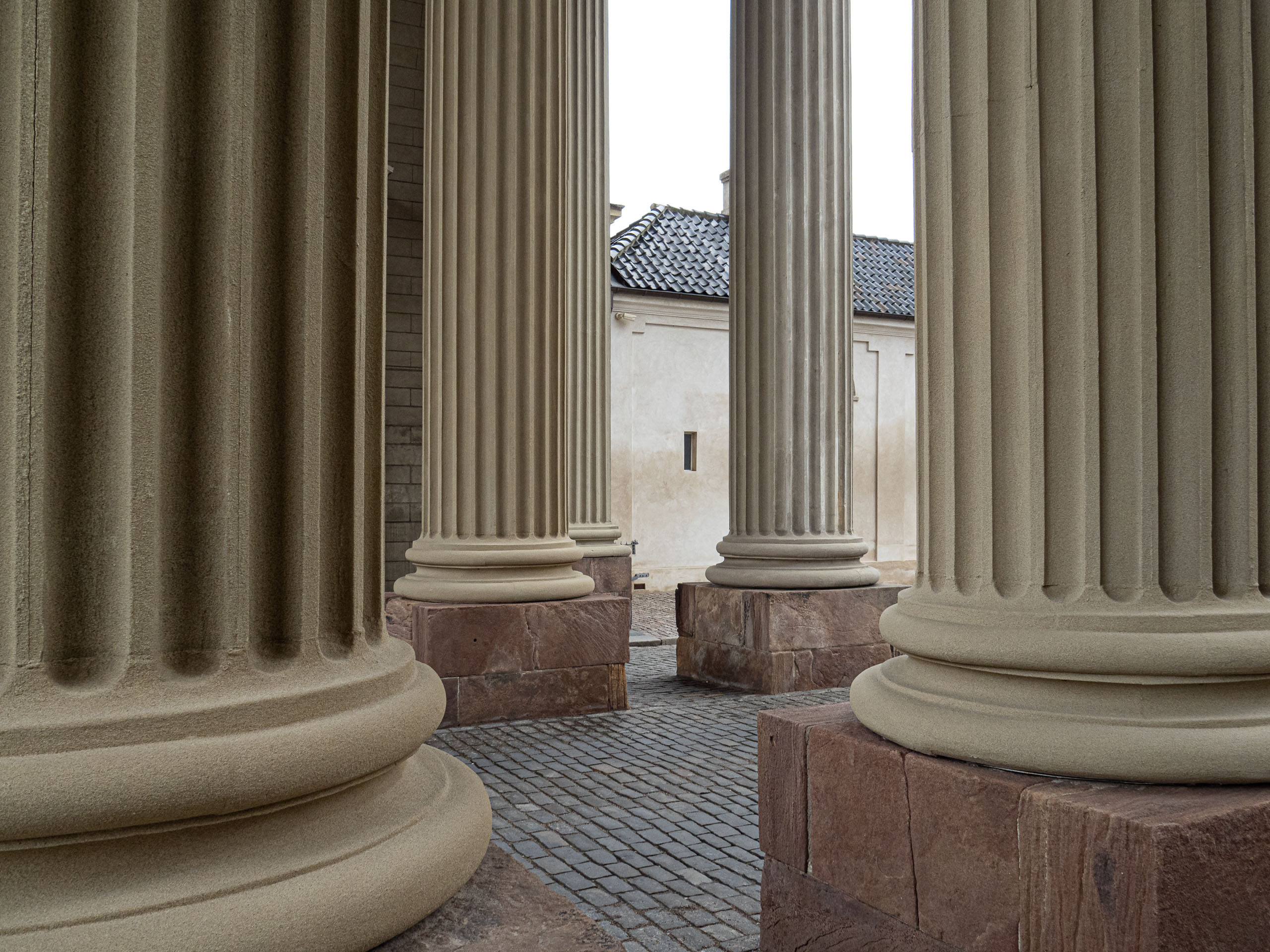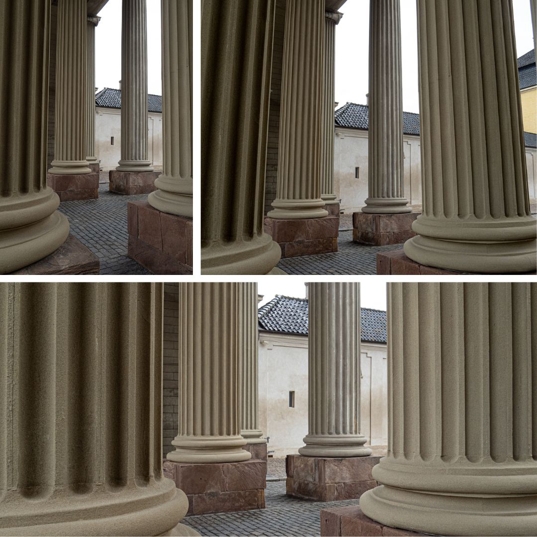 Three prints of cream columns in Copenhagen, Denmark, curated to form a set of three prints in complimenting tones.